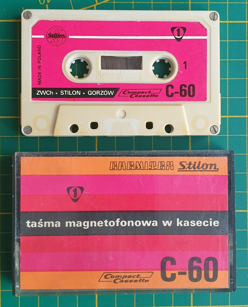 A jakie materiały magnetyczne były używane w przypadku taśm? Wytwarzano cztery typy taśmy magnetycznej. Przez długi czas materiałem był przede wszystkim Fe₂O₃ (taśma „żelazowa” miała kolor jasnobrązowy), później z dodatkiem kobaltu (kolor ciemnobrązowy). Były to taśmy i kasety Type I. Od pewnego momentu zaczęto korzystać także z ditlenku chromu, który był co prawda droższy i wymagał lepszej jakości magnesów do zapisywania i odtwarzania, ale dawał lepszą jakość dźwięku. Taśmy „chromowe”, określane jako Type II, miały barwę czarną. CrO₂ używano też w przypadku taśm i kaset do zapisu wideo, np. w kasetach VHS.