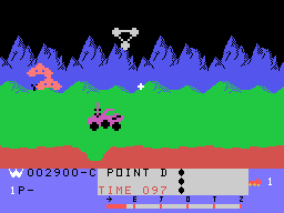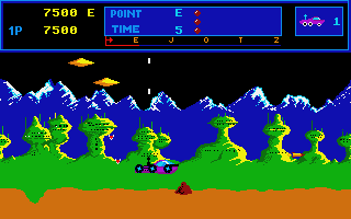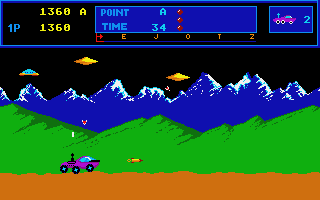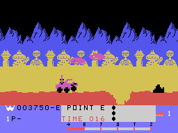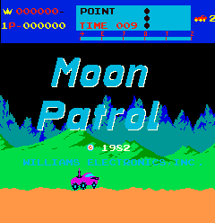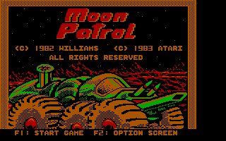 Następny tytuł, który chciałem przypomnieć, to cieszący się dużą renomą wśród miłośników nostalgii „Moon Patrol” z 1982 roku. W przeciwieństwie do dwóch poprzednich tytułów jest to gra, która spotkała się z wielkim uznaniem i do dziś ma całkiem dobre recenzje. Jej popularności sprzyjały też liczne konwersje na komputery 8- i 16-bitowe (Atari próbowało poza tym wydać całkiem własnego klona pod tym samym tytułem – ot, uroki pionierskiego bezprawia). Stworzono nawet wersję na Spectrum, ale mimo ukończenia nie została opublikowana. Poniżej galeria screenshotów z różnych platform.