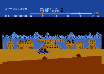 Trasa podzielona jest na 25 odcinków oznaczonych literami, co pięć odcinków znajduje się punkt kontrolny umożliwiający wznowienie rozgrywki. Po dotarciu do takiego punktu gracz jest zawsze oceniany, a jeśli osiągnął czas przejazdu lepszy od wymaganego – nagradzany dodatkowymi punktami. Podobno „Moon Patrol” był pierwszą grą pozwalającą na kontynuowanie zabawy po utracie wszystkich żyć – oczywiście za następny credit, czyli za kasę.