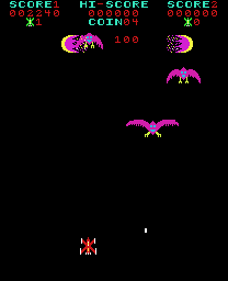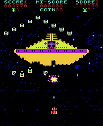 [wszystkie screenshoty z MobyGames, poza screenem fazy bossa z „Phoenixa” By Hiraoka/TPN/Centuri – Video game emulator (MAME), Fair use, https://en.wikipedia.org/w/index.php?curid=62890972 i zdjęciem automatu z „Crashing Race”, które pochodzi ze strony Museum of the Game, https://www.arcade-museum.com/Videogame/crashing-race]