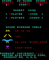 Po pierwsze, liczba punktów otrzymywanych za zniszczenie wroga nie była stała i zależała nie tylko od jego rodzaju. Najmniej dostawaliśmy za statki w stanie gotowości u góry ekranu, więcej za przeciwników zniszczonych w trakcie ataku, a szczególnie dużo – za wroga odlatującego z powrotem na górę (przeciwnicy pochodzili z cywilizacji mechanicznych ptaków z kosmosu, którzy przybyli po nasze surowce). Po drugie, „Phoenix” nie powtarzał tej samej fali wrogów w kółko, tylko cykl pięciu różnych faz. W pierwszych dwóch walczyliśmy z małymi wrogami. W dwóch następnych przeciwnikami były duże ptaki, pojawiające się najpierw w formie jajek (i te jajka zygzakujące po ekranie też można było niszczyć). Piąta faza to było starcie z bossem – statkiem-matką, który ulega zniszczeniu dopiero po trafieniu stwora ukrywającego się w jego centrum. Mothership jest chroniony przez eskortę małych stateczków, pancerz oraz przesuwającą się tarczę. Po wybiciu dziury w pancerzu ORAZ w tej tarczy należało jeszcze tak wymierzyć strzał, żeby przeleciał przez lukę w tarczy, gdy znajdowała się ona na wprost celu.