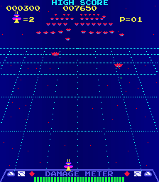 Kolejną grą, którą pamiętam z wczasów – konkretnie z wakacji w Wiśle, poza wizytami w salonie gier dość nudnych dla nastolatka – jest „Radar Scope”. Ta produkcja pewnej dość znanej firmy o nazwie Nintendo również pochodzi z 1980 roku i można ją uważać za klona „Space Invaders”: zwalczamy fale statków „obcych” o nazwie Gamma Raiders, strzelając z miotacza przesuwanego na boki wzdłuż dolnej krawędzi ekranu. Są też jednak istotne różnice: rozgrywka toczy się w środowisku pseudotrójwymiarowym (zarówno ruchome, jak i stałe elementy grafiki sprawiają wrażenie, że patrzymy „w głąb” ekranu), ze statków u góry możemy trafiać tylko najniższy rząd, a baza Sonic Spaceport, której bronimy, ma pasek życia opisany jako Damage Meter. Atakujący zrzucają miny, a czasem po trafieniu zamiast eksplodować zmieniają się w płonący wrak, który „opada” na bazę i jeśli do niej dotrze, to wyrządzi spore szkody. Pamiętam też, że od czasu do czasu pojawiał się większy i trudniejszy przeciwnik, a niekiedy dawało się włączyć barierę chroniącą przed uszkodzeniami. Gracz miał trzy życia, które tracił albo wskutek skasowania całego paska życia albo wskutek trafienia miotacza przez strzał lub statek wroga.