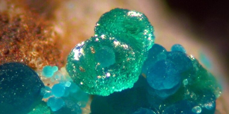[zdjęcia za pośrednictwem strony mindat.org, autorzy: Steve Rust; Robert O. Meyer × 2; O. Dziallas (wiodące); Arliguie M; Yaiba Sakaguchi; Manfred Kampf; Luigi Chiappino; Stephan Wolfsried]
